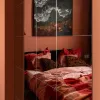 Pokój z zachodnią ekspozycją stał się świetlistym azylem. Ściany w odcieniu pomiędzy pomarańczem a czerwienią zatrzymują złote światło popołudnia, które dodatkowo wzmacniają żółte zasłony. Efekt potęguje lustro złożone z drobnych tafli, rozpraszające promienie po całym wnętrzu.